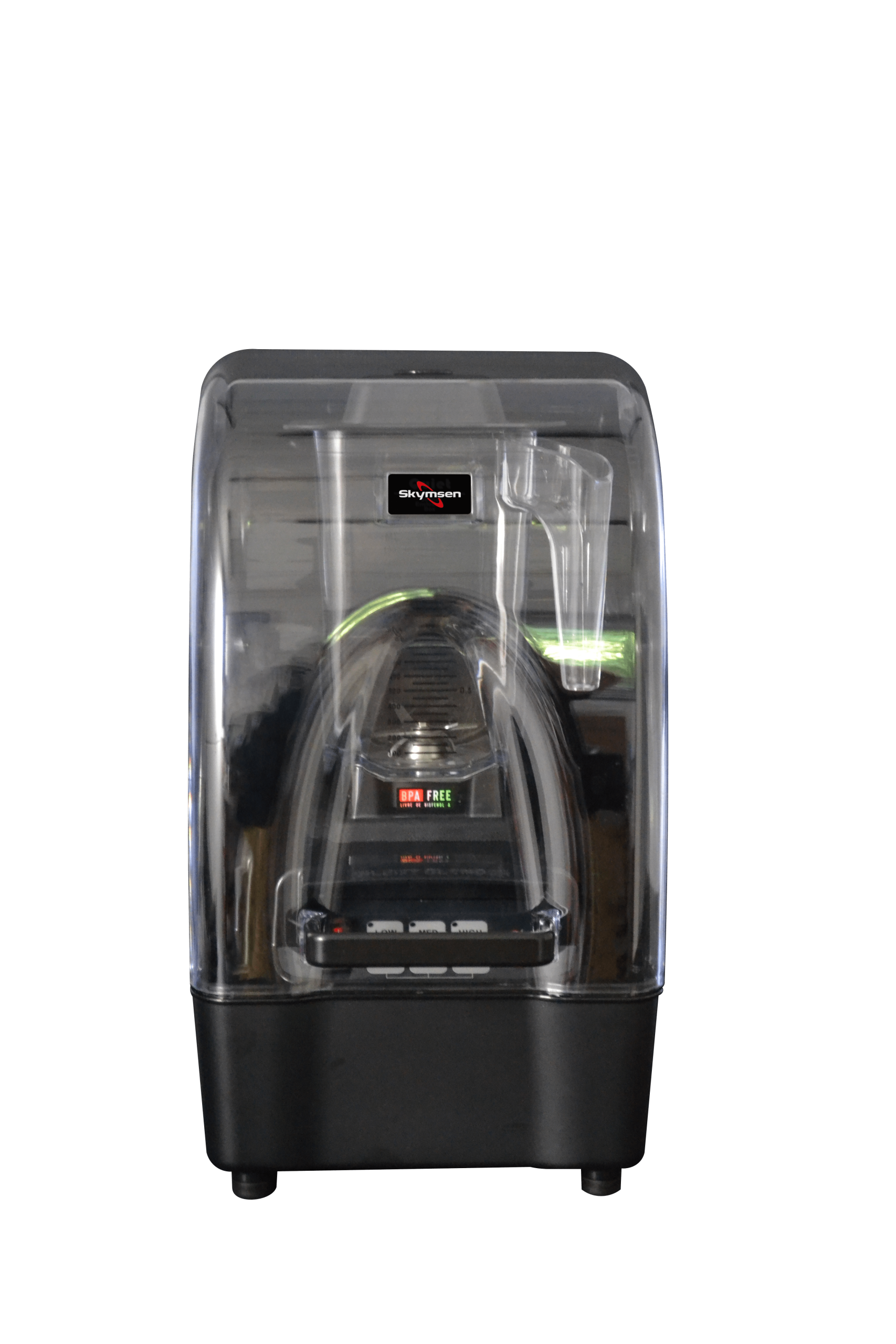 O liquidificador BAR 1.5 Skymsen tem uma capacidade de 1,5 litros e está equipado com uma proteção acústica que reduz o ruído emitido pelo aparelho até 80%. É ideal para a preparação de sumos, cocktails, milkshakes e bebidas geladas. O seu motor super potente de 2.238 watts permite processar polpa de frutas congelada, triturar gelo e café. O copo em Tritan é extremamente resistente e permite a preparação de alimentos quentes. A variação de velocidade e a duração de funcionamento podem ser pré-definidas. Indicado para sumo de frutos e batidos em geral, incluindo com frutas congeladas.