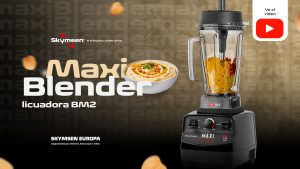 O liquidificador BM2 Skymsen tem uma capacidade de 2 litros. Possui função pulsar, e é ideal para a preparação de sumos, cocktails, milkshakes e bebidas geladas. O seu motor super potente de 2.238 watts, combinado com uma lâmina em aço com 6 pontas, permite processar polpa de frutas congelada, triturar gelo e café. O copo em Tritan é extremamente resistente e permite a preparação de alimentos quentes. Indicado para sumo de frutos e batidos em geral, incluindo com frutas congeladas.